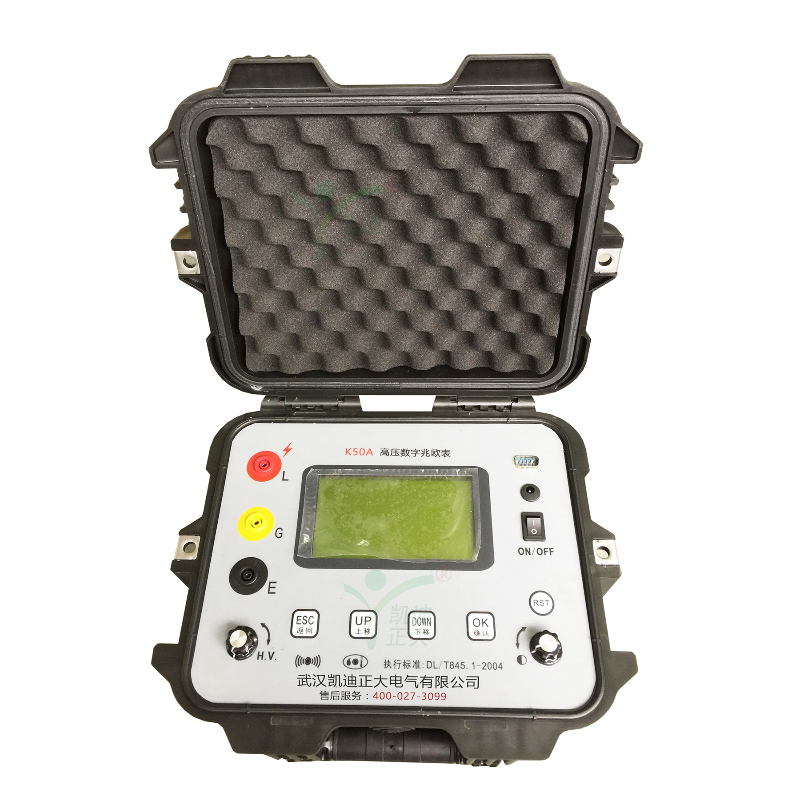 KD50A高壓絕緣電阻測試儀具有50V、100V、250 V、500V、1.0kV、2.5kV、5.0kV、10.0kV共8個(gè)電壓輸出檔,測試最大可達(dá)10TΩ。容量大、抗干擾強(qiáng)、液晶屏同步顯示、交直流兩用、操作簡單、自動(dòng)計(jì)算各種絕緣指標(biāo)、吸收比、極化指數(shù)、各種測量結(jié)果具有防掉電功能等特點(diǎn)。是測量大容量變壓器、互感器、發(fā)電機(jī)、高壓電動(dòng)機(jī)、電力電容、電力電纜、避雷器等絕緣電阻的測試儀器。