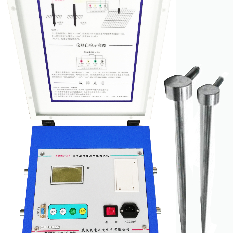 KDWS-10A型大型地網(wǎng)接地電阻測試儀,可測變電站地網(wǎng)(4Ω)、水火電廠、微波站(10Ω)、避雷針(10Ω)多用機型,采用了新型變頻交流電源,并采用了微機處理控制和信號處理等措施,很好的解決了測試過程中的抗干擾問題,簡化了試驗操作過程,提高了測試結果的精度和準確性,大大降低了試驗人員的勞動強度和試驗成本。
