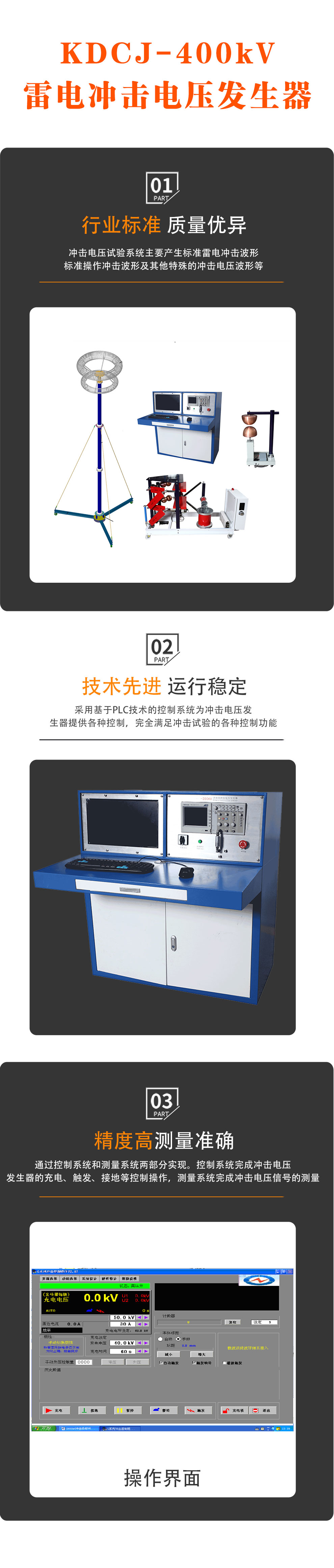 模擬脈沖高電壓的試驗設備,主要用于對電力設備進行雷電沖擊電壓全波、雷電沖擊電壓截波和操作沖擊電壓波的沖擊電壓試驗,檢驗絕緣性能