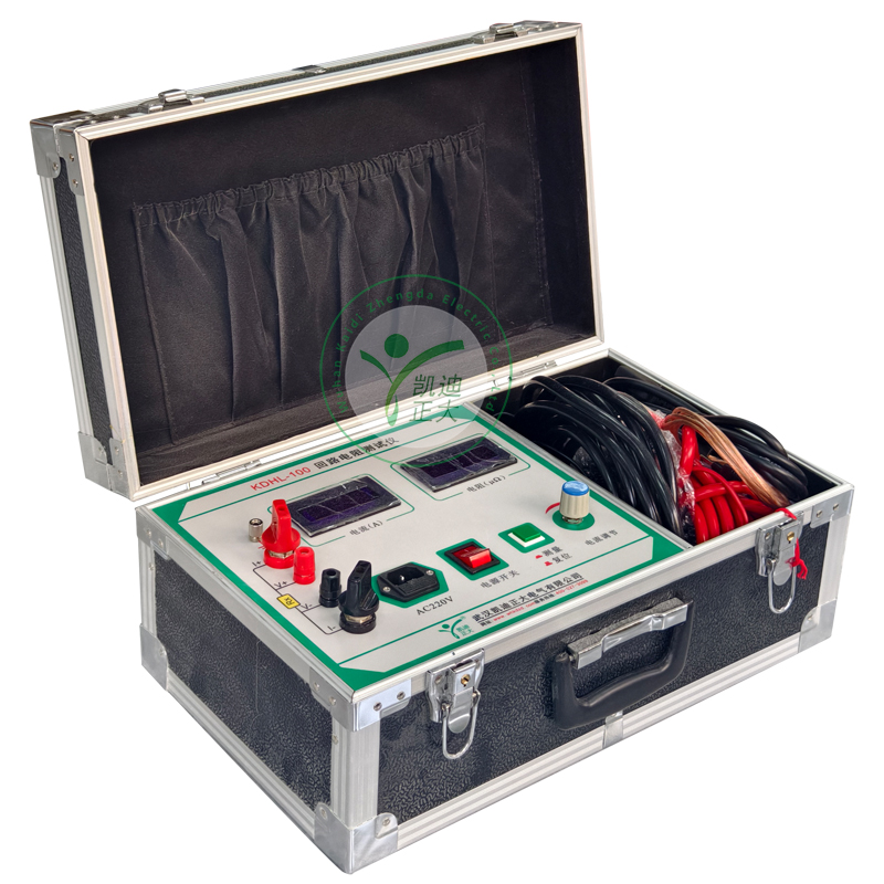 KDHL-100回路電阻測試儀是采用數字電路技術和開關電源技術相結合設計而成。它適用于開關控制設備的接觸電阻、回路電阻的測量。其測試電流采用國家標準推薦的直流100A。可在電流100A的情況下直接測得回路電阻和接觸電阻,并用數字顯示出來。該儀器測量準確、性能穩定,適合電力、供電部門現場高壓開關維修和高壓開關廠回路電阻測試得要求。