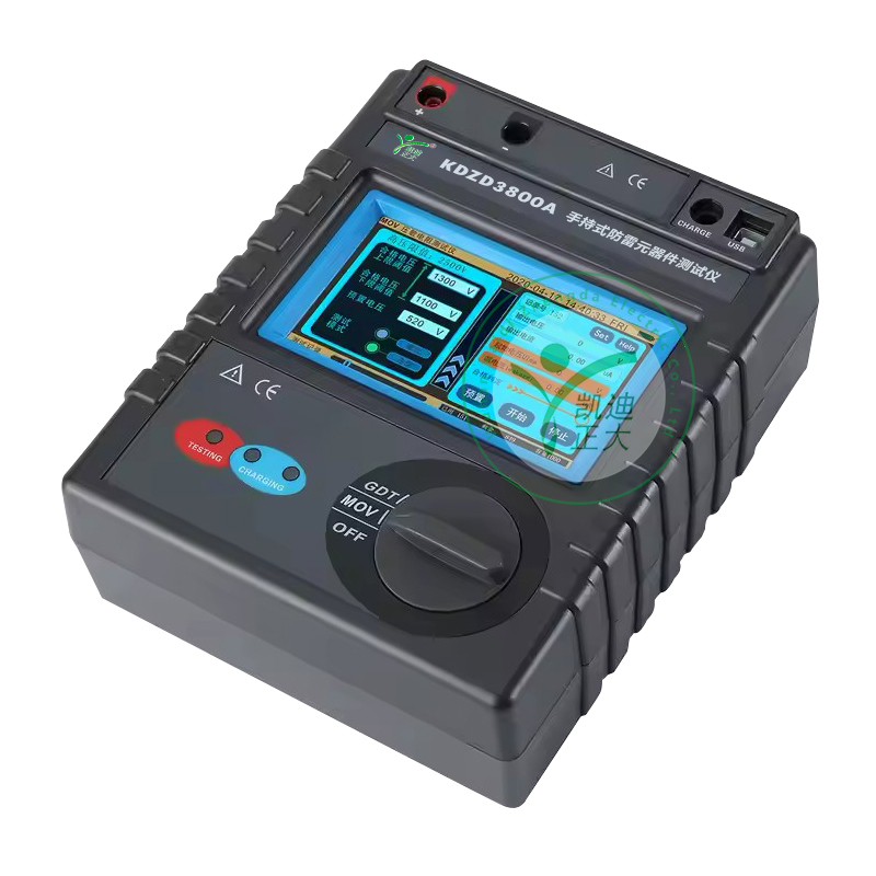 KDZD3800A 手持式防雷元器件測試儀采用觸摸彩屏中文界面,功能直達、一鍵測量、操作 簡易快捷,用戶無需費力記憶操作方法,點擊屏幕的“HELP ”即可彈出操作方法,有效指引用 戶操作儀表。同時儀表采用大容量可充電鋰電池、具有數(shù)據(jù)存儲功能,可自動存儲含有日期時 間的測試結(jié)果 3000 組、觸摸屏方便用戶查閱歷史記錄、USB 數(shù)據(jù)上傳導(dǎo)出等功能,還有自動關(guān) 機、電池電量低提醒等功能。
