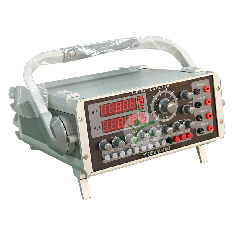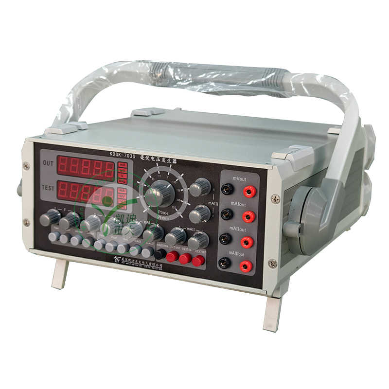 KDGK-703S便攜式綜合校驗儀(毫伏發生器)是一種集數顯式電壓、電流、頻率標準信號源、Pt100 鉑電阻溫度模擬標準信號源、數字式電壓、電流、頻率測量功能于一體的高精度、高分辨率、多用途的自動化儀表校準儀器。
