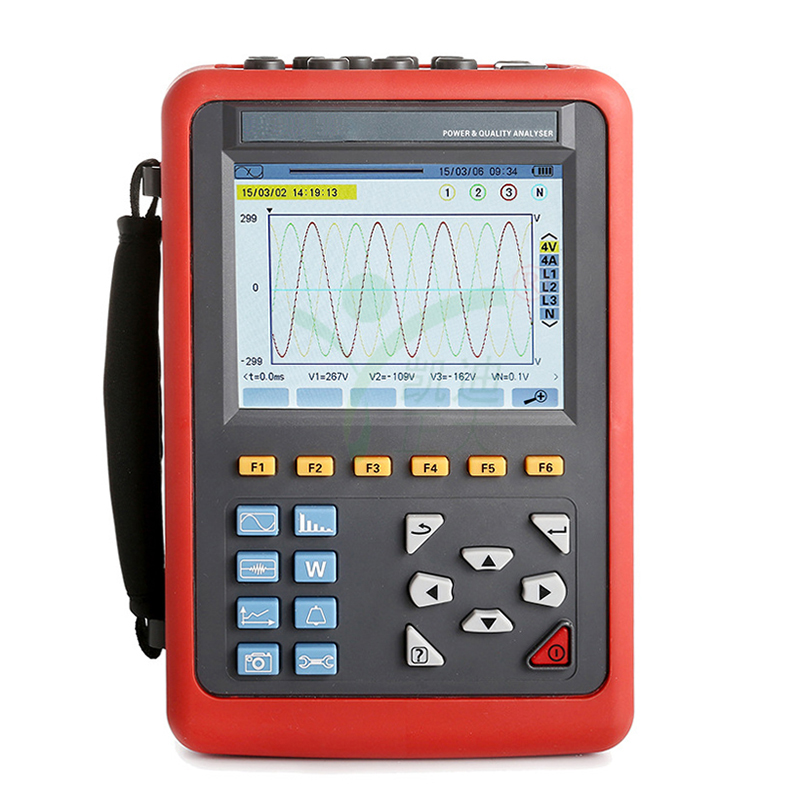 KDZD5000電能質(zhì)量分析儀是我公司精心研制的現(xiàn)場測試的三相、多功能、智能化、人機(jī)操作簡潔的綜合型測試儀器。具有容易使用,超大液晶彩屏顯示,高分辨率,中英文雙語操作界面,防振結(jié)構(gòu)外殼等特點(diǎn)??赏瑫r(shí)測量4路電流(ABC三相及中性線電流),4路電壓(ABC三相電壓及中性線對(duì)地電壓)、電流電壓的峰值、一段時(shí)間內(nèi)的最大最小值、三相不平衡度、短時(shí)電壓閃變、變壓器K因數(shù)、有功功率、無功功率、視在功率、功率因數(shù)、位移功率因數(shù)、有功電能、無功電能、視在電能、諧波比、總諧波失真度等;顯示電流電壓的實(shí)時(shí)波形、相量圖、諧波比柱形圖;動(dòng)態(tài)捕捉電壓電流瞬時(shí)變化,監(jiān)測啟動(dòng)電流,監(jiān)測各電力參數(shù)并生成告警列表,長時(shí)間記錄測試數(shù)據(jù)并生成趨勢曲線圖等功能。
