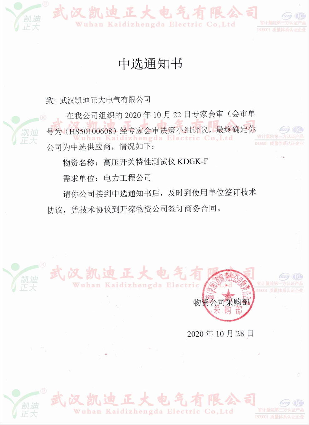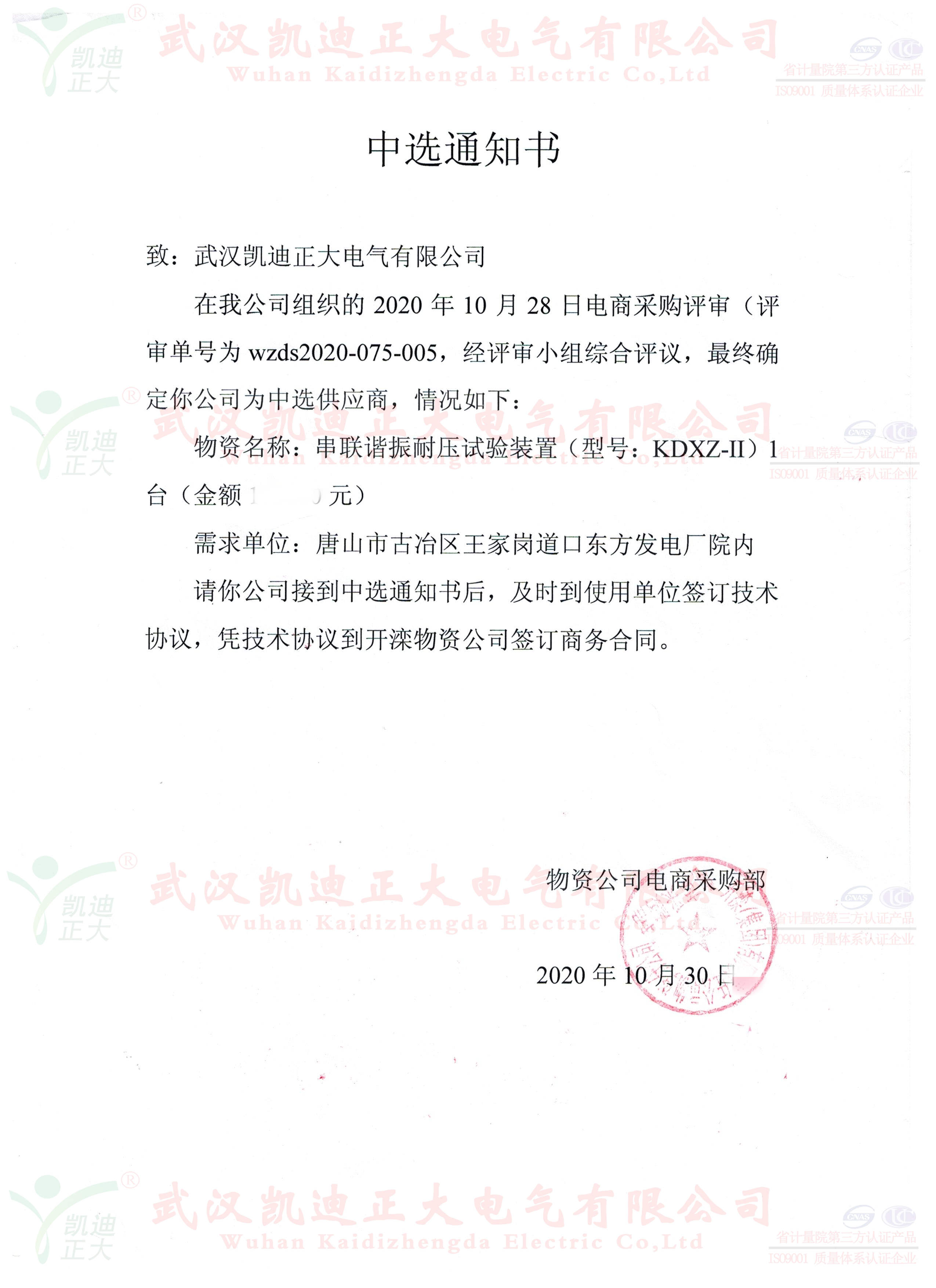 誰無暴風勁雨時,守得云開見月明。這個11月可以說是灰蒙蒙的,經(jīng)歷了洗刷.......。我司與國內(nèi)大型鋼鐵企業(yè)的合作,各大煤業(yè)集團均獲得訂單。這次是開灤集團的東方電廠公開詢價采購KDXZ-II串聯(lián)諧振耐壓試驗裝置、KDGK-F高壓開關機械特性測試儀等設備。在與多家電氣設備制造商的競標中,我司以優(yōu)質(zhì)口碑、多項專利技術(shù)、精準售后等高分獲得評標組的認可。獲得中選供應商。