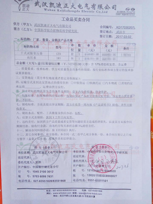 中國科學(xué)院合肥物質(zhì)科學(xué)研究院認(rèn)可我公司干式試驗變壓器,再一次證明了武漢凱迪正大電氣有限公司在電氣試驗設(shè)備行業(yè)領(lǐng)導(dǎo)者的地位。