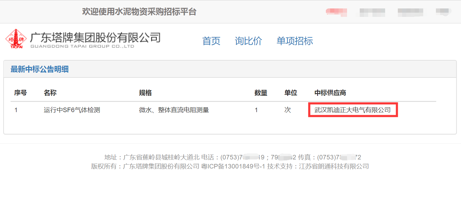 祝賀我司中標(biāo)塔牌集團(tuán)運(yùn)行中SF6氣體檢測(cè)