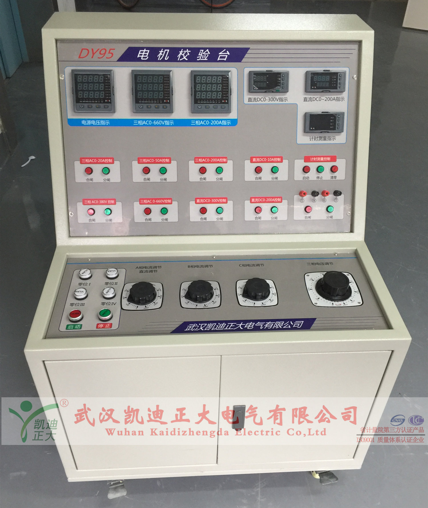 1、DY95電機校驗臺用于高低壓開關(guān)柜生產(chǎn)廠家對所生產(chǎn)的高低壓開關(guān)柜進行出廠前的各項通電試驗。它能提供各種交、直流電源,便于對開關(guān)柜的檢測,提高工作效率。