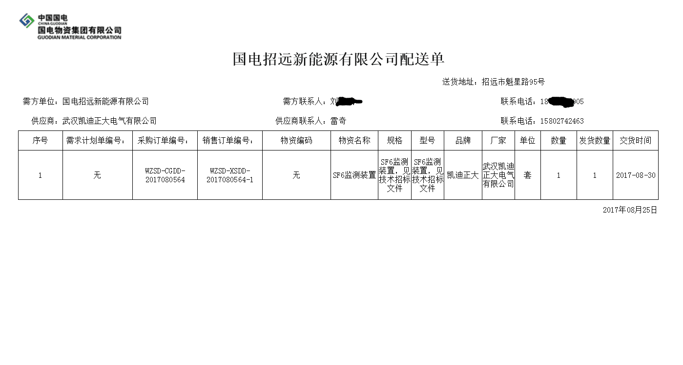 近期江城持續(xù)高溫,酷暑難耐。但絲毫沒有影響凱迪正大同仁的工作熱情,八月中旬,凱迪正大在國電招遠新能源有限公司《35KV配電室加裝SF6監(jiān)測裝置項目》招標采購中,憑借著良好的市場信譽,可靠的產品質量成功拿下此標的。詢價單編號:WZSD-2017080285
