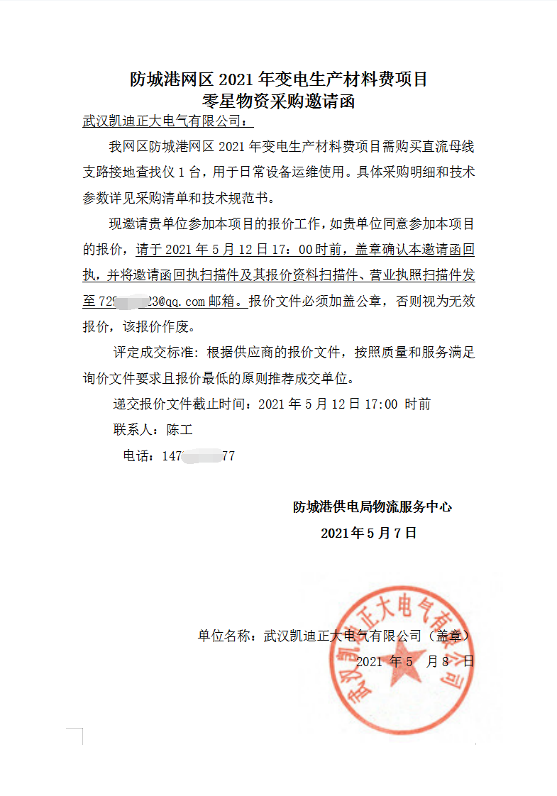 防城港網(wǎng)區(qū)2021年變電生產(chǎn)材料費(fèi)項(xiàng)目零星物資采購(gòu)邀請(qǐng)函
