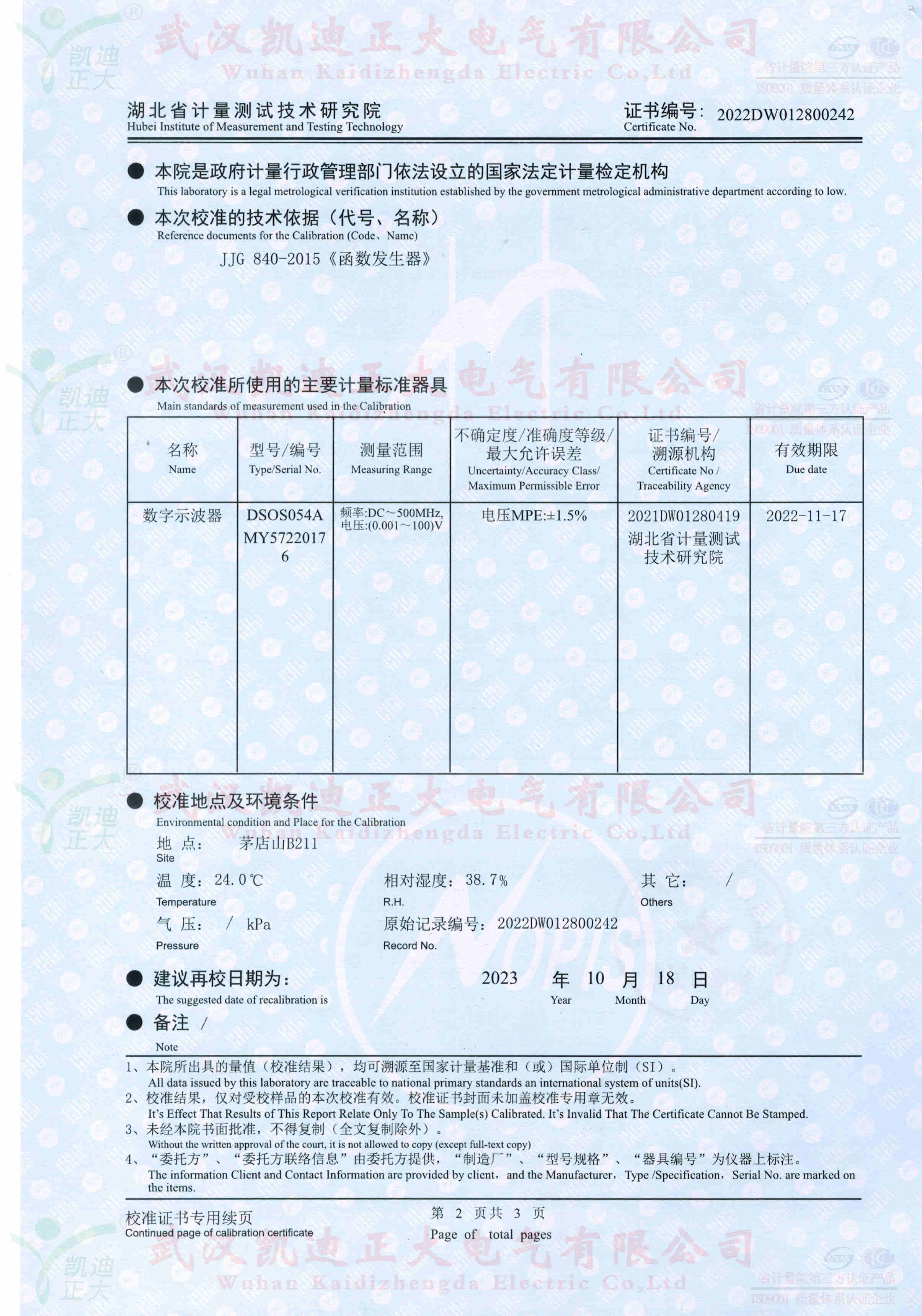 架空線路故障儀獲得電氣設備質量檢驗測試中心報告