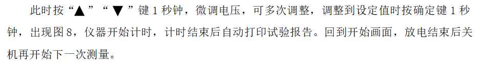 ★另外還有兩種非正常停機:過壓保護停機、過流保護停機。停機后出現(xiàn)相應的提示界面,放電結束后,再調整限制電壓值或限制電流值,再開始下次測量。