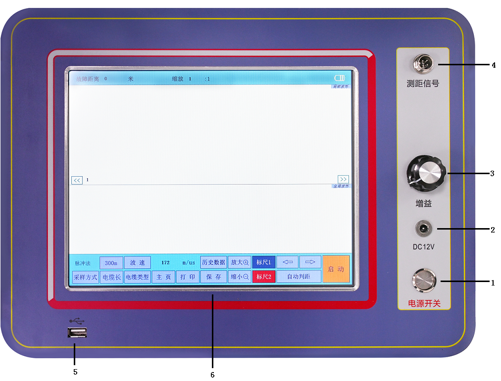 4、測距端口:測量電纜故障點距離時,從該端口發(fā)出信號。