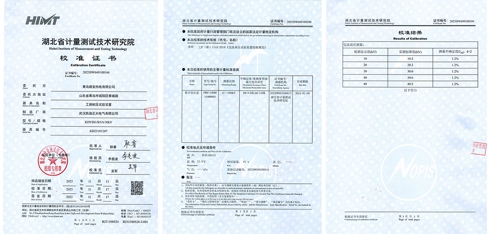 近期,青島順安熱電有限公司采購我司串聯諧振,變壓器變比測試儀,互感器伏安特性測試儀,工頻耐壓試驗裝置等一批電力試驗儀器,并委托湖北省計量測試技術研究院進行檢定和校準結果。在這個項目中,我司提供的所有設備均通過相關檢定,我司憑借著過硬的產品實力和嚴謹的服務態度,贏得了客戶的充分認可和贊揚。與青島順安熱電順利完成合作相關流程,再次展現出高質量的設備水平和高規格的合作典范。