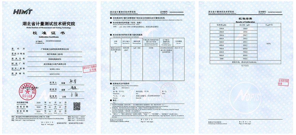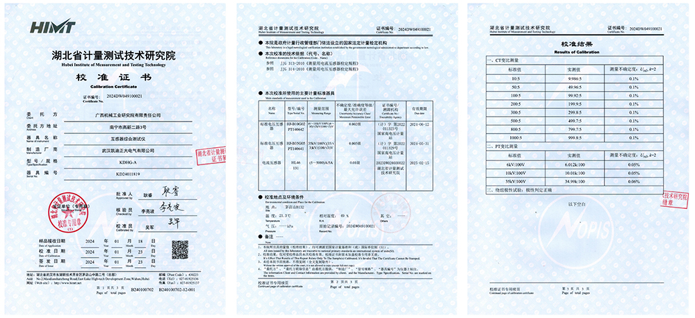 2024年1月22日,廣西機(jī)械工業(yè)研究院有限責(zé)任公司采購武漢凱迪正大的KDHG-A 互感器綜合測(cè)試儀 、KDHL-100A 回路電阻測(cè)試儀、KDJB-702C 微機(jī)繼電保護(hù)測(cè)試儀等電力儀器儀表,通過了湖北省計(jì)量測(cè)試技術(shù)研究院的嚴(yán)格校準(zhǔn)。武漢凱迪正大作為電力儀器儀表的供應(yīng)商,先后為國內(nèi)外多家企業(yè)提供所需的的試驗(yàn)設(shè)備,產(chǎn)品在行業(yè)內(nèi)受到廣泛好評(píng)和推崇。